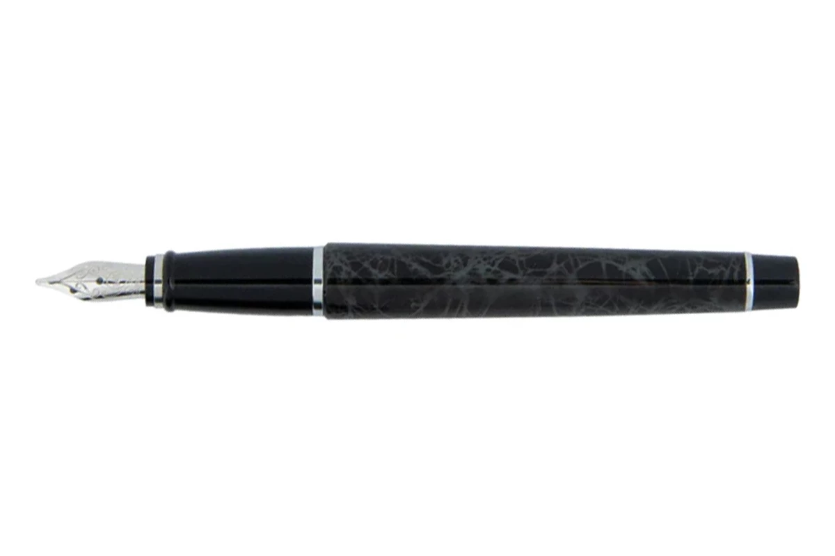 Het schrijfinstrument heeft een houder van grijs hars met verchroomde zilveren versieringen. Het oppervlak van de pen bevat een delicaat gemarmerd patroon wat het iconische Lacca ontwerp reflecteert.