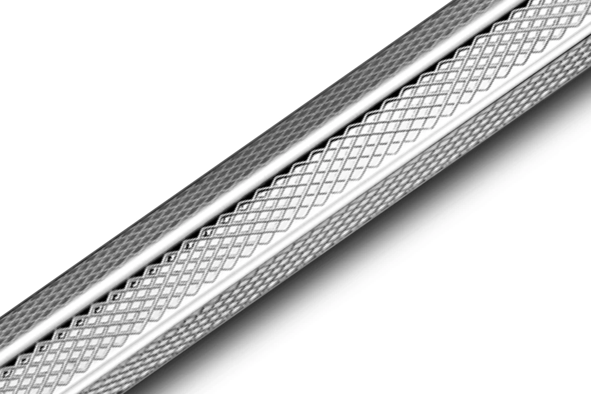 Een visueel ritmische reeks lijnen zorgt ervoor dat de motieven die fijn gegraveerd zijn op het lichaam van dit iconische model ongelooflijke perspectieven creëren, die subtiele variaties afhankelijk van de hoek van waaruit het wordt bekeken. Als een caleidoscoop wordt de zeshoek een kubus en onthult het oppervlak eindeloze mogelijkheden.