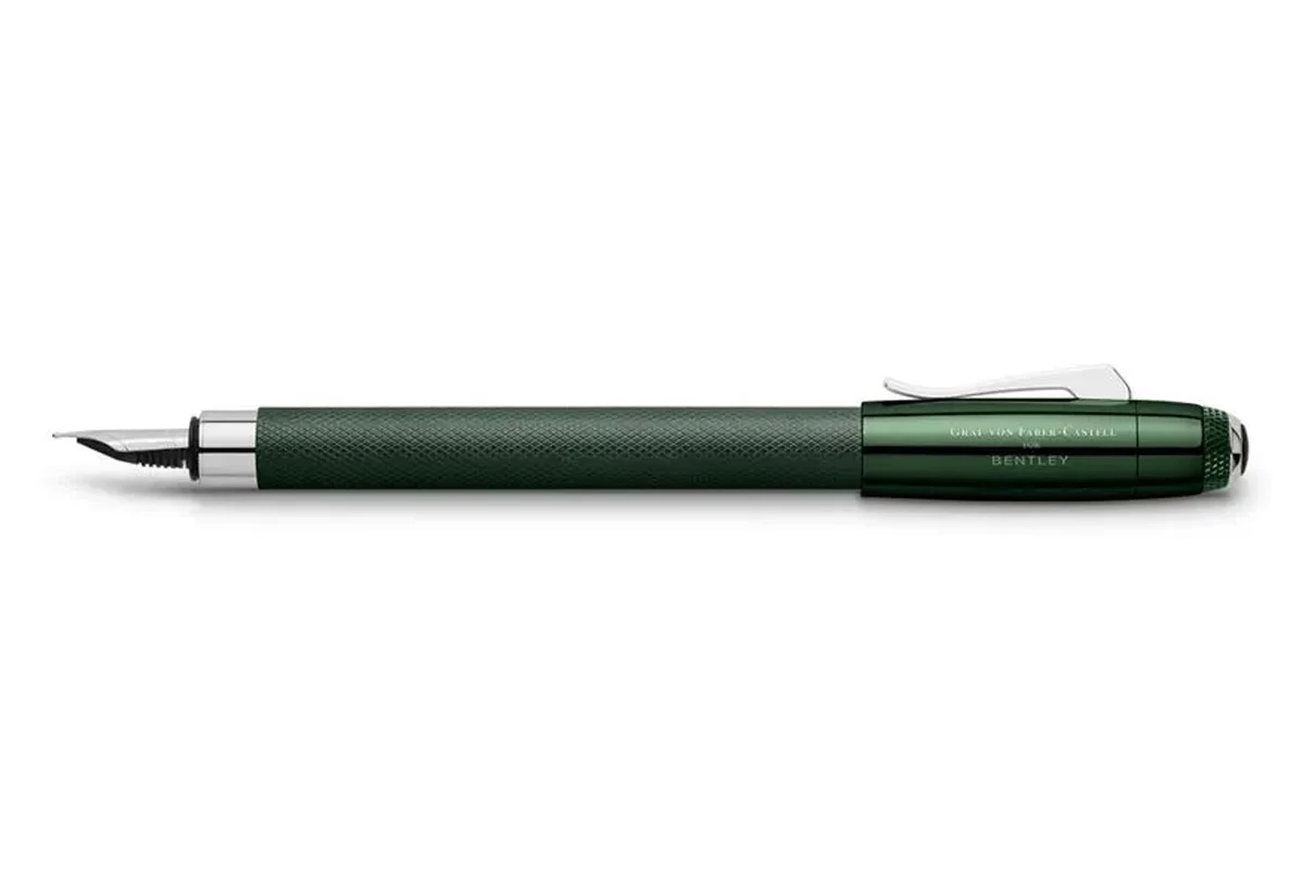 De Graf von Faber-Castell for Bentley vulpen heeft een 18kt gouden penpunt en maakt gebruik van een cartridge/converter vulmechanisme.