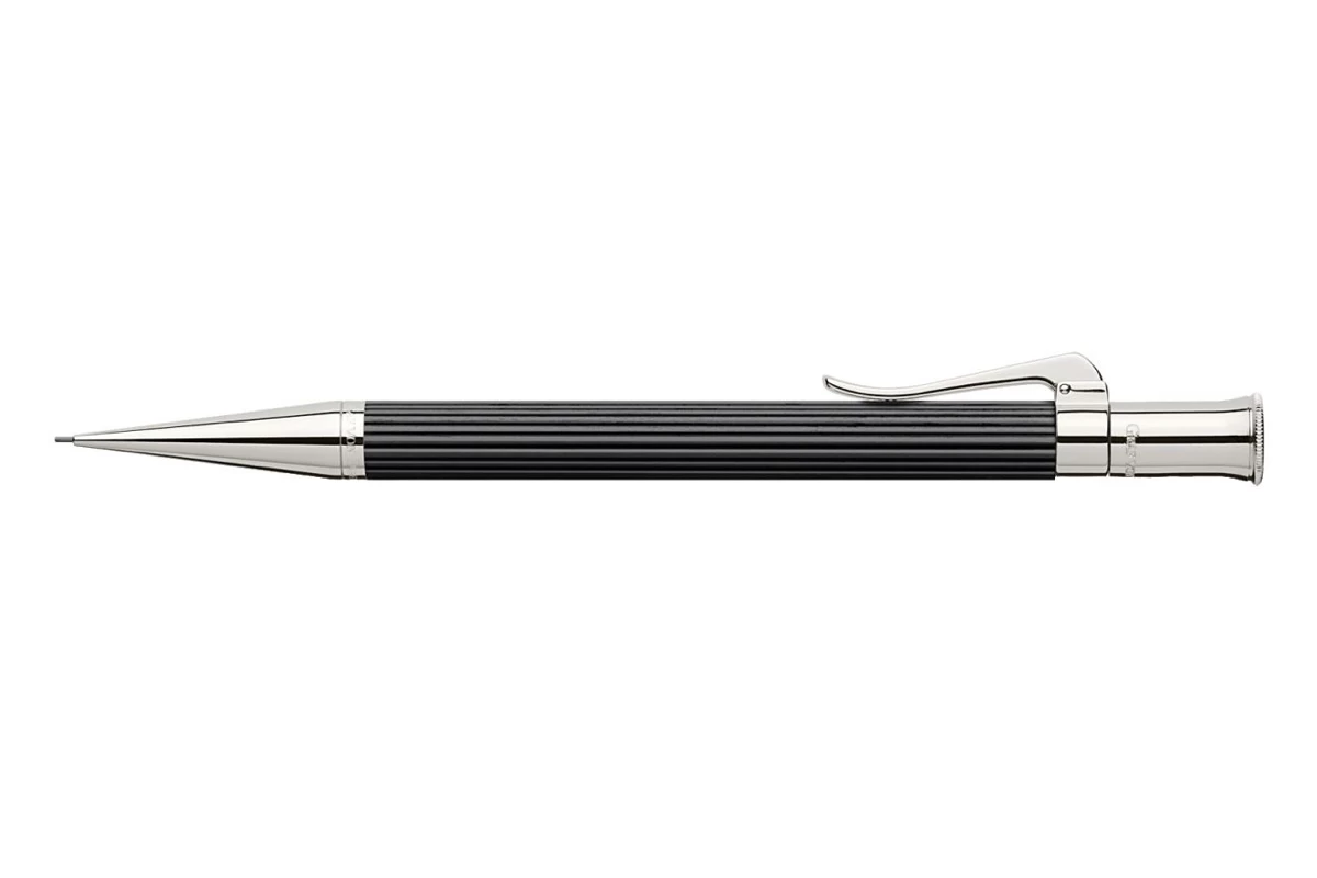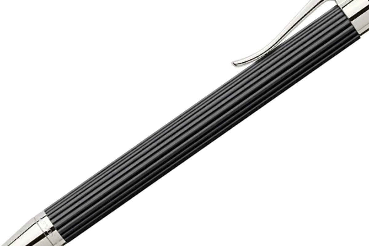 De Classic collectie van Graf von Faber-Castell combineert de natuurlijke uitstraling van hout met de koele elegantie van geplatineerde oppervlaktes. Het lichaam van dit vulpotlood is op verfijnde wijze geribbeld, en uitgevoerd in donker ebbenhout. Dit type hout is bijzonder hard en duurzaam, waardoor het niet eenvoudig te bewerken is. Dankzij het natuurlijke verschil in textuur en kleur is ieder schrijfinstrument uit deze collectie uniek.