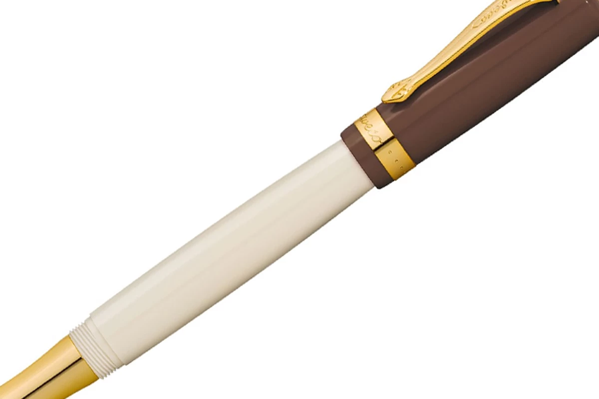 Verder bevat de pen traditionele goud accenten, gedecoreerd met iconische Kaweco gravering. Ook de penpunt is goud gekleurd inclusief karakterische gravure.