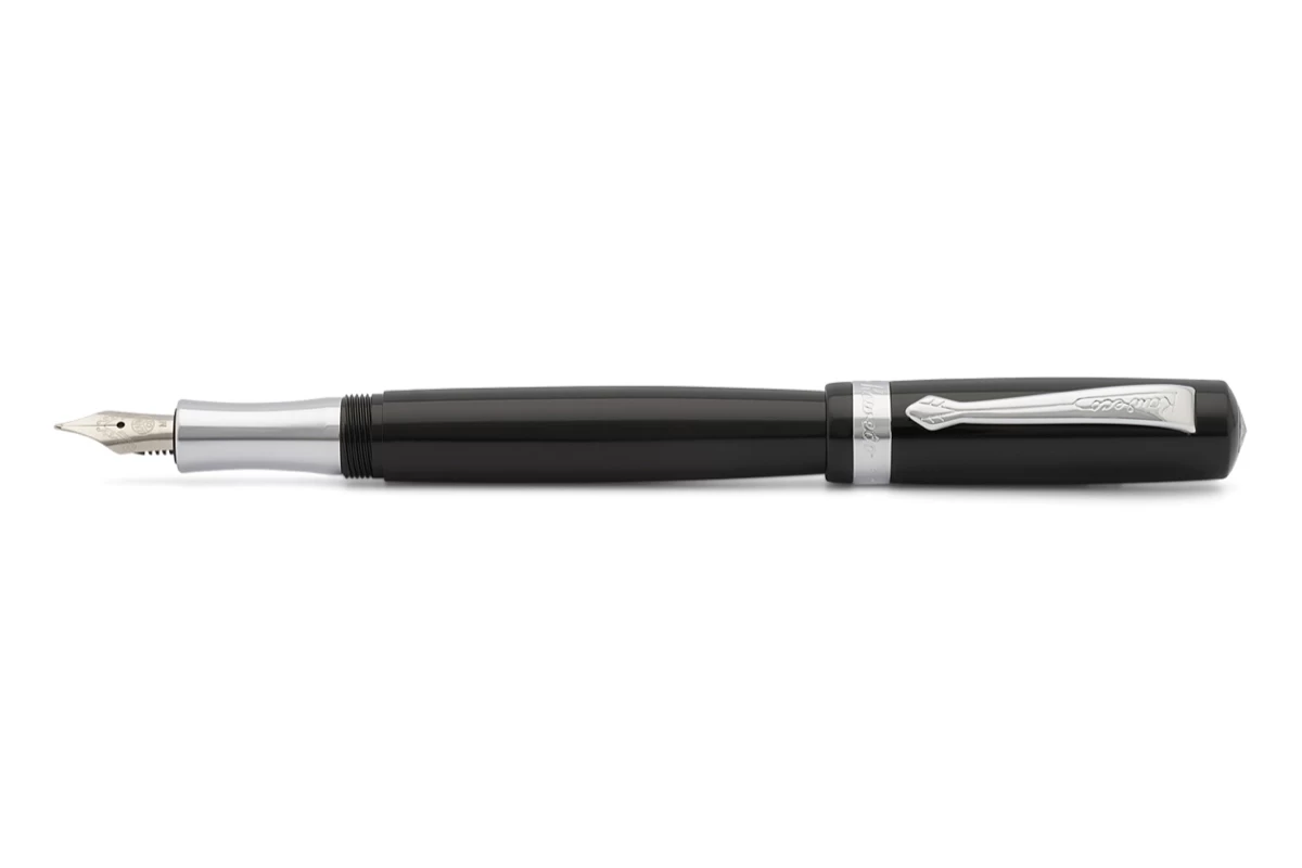 Deze Student vulpen van Kaweco is uitgevoerd in zwarte kleur. De vulpen is gemaakt van gepolijst en spuitgegoten acryl. De metalen onderdelen zijn van verchroomd messing.