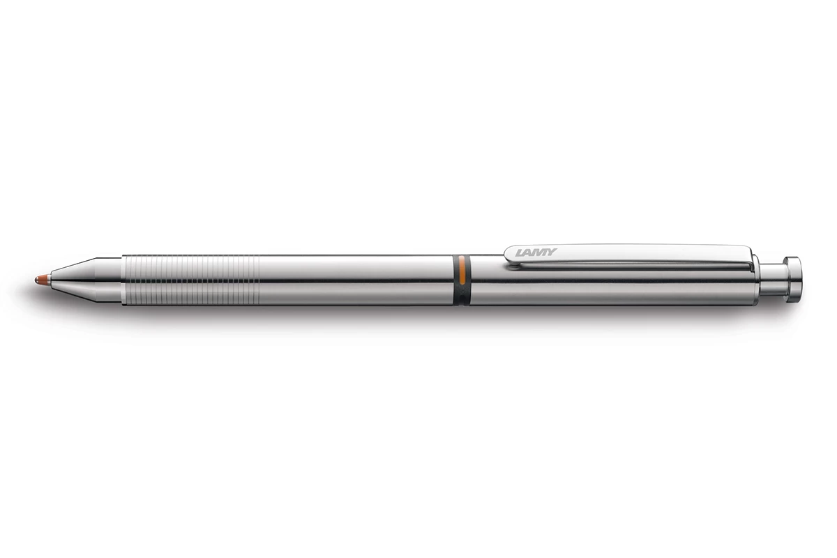 Balpen, vulpotlood en marker in één. Schakelsysteem met draaimechanisme. Ingebouwde gum onder de verwijderbare knop (LAMY cp1 / st).