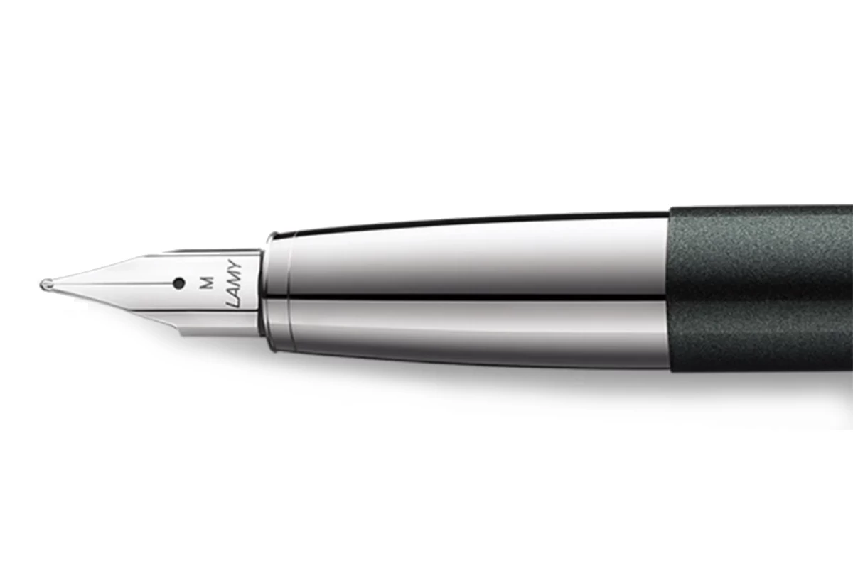 De bijzondere elegantie van de LAMY-studio laat zien hoe dicht bij elkaar design en kunst kunnen liggen. De propellervormige clip accentueert de innovatieve vorm van de pen. De pen heeft een glanzende zwart-groene lakafwerking met stalen propellervormige clip en een gepolijste stalen penpunt.