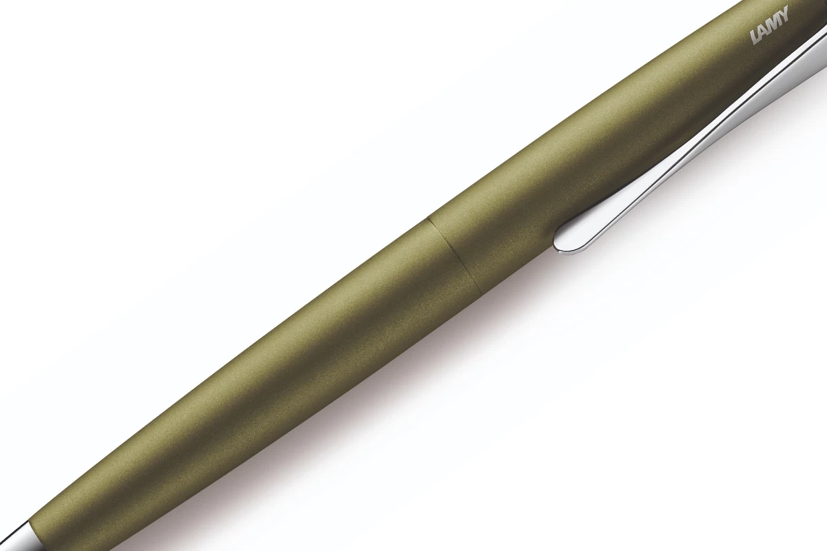 Speciale editie 2022: LAMY studio olijfgroen. De LAMY studio laat op elegante wijze zien hoe dicht design en kunst bij elkaar kunnen liggen.