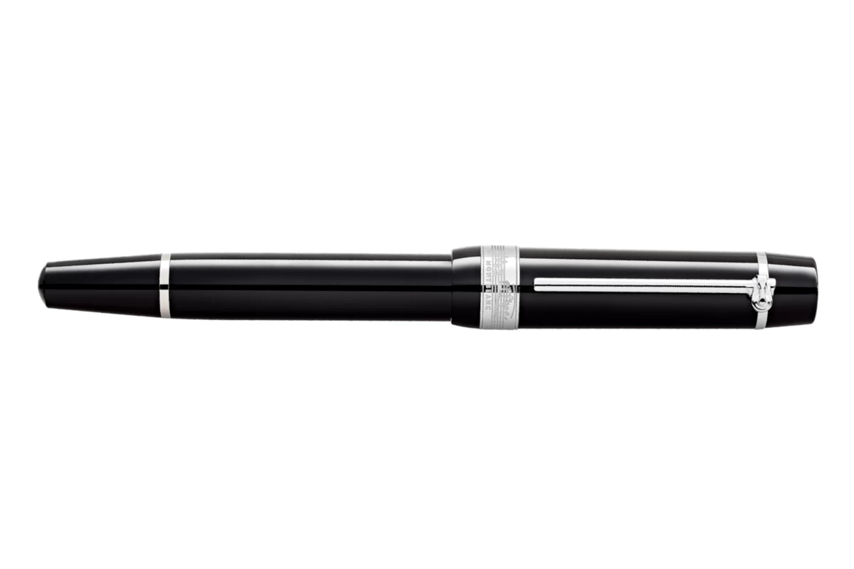 De dop en de barrel zijn gemaakt van zwarte kostbare hars gecombineerd met platina gecoate details. De handgemaakte Au 585 massief tweekleurige gouden penpunt heeft een portret van Frédéric Chopin.