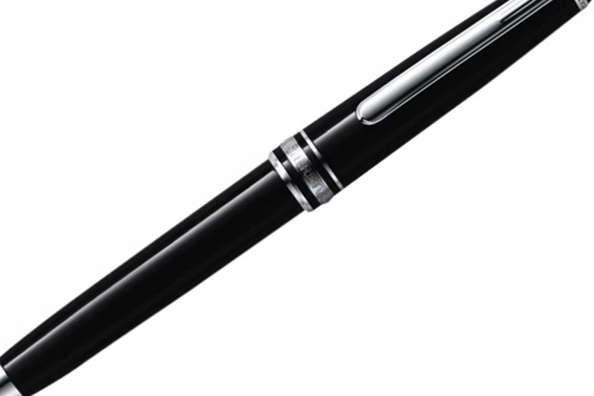 De dop en houder zijn gemaakt van zwart edelhars met het iconische witte Montblanc-embleem ingelegd in de bovenkant van de dop. Dit materiaal is kleurvast en krasvast, waardoor het schrijfinstrument zijn glans behoudt. De pen is afgewerkt met geplatineerde accenten.