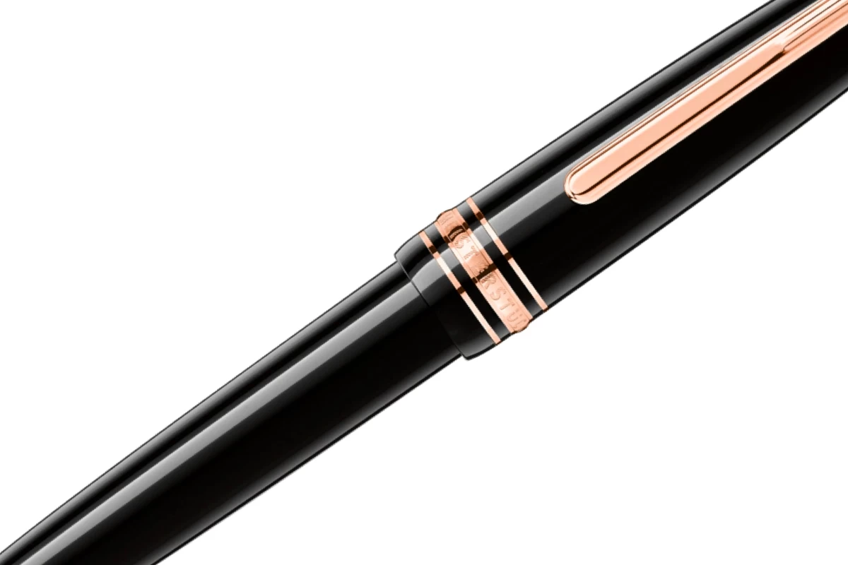 Dit exemplaar is voorzien van ringen en clip in roodgoud, en een met rhodium bewerkte, 14karaats gouden penpunt. Elke pen is getopt met de witte Montblanc ster. Deze LeGrand Edition is een grotere pen dan de standaard Red Gold Classique, perfect voor wie grotere handen heeft of van grotere pennen houdt.