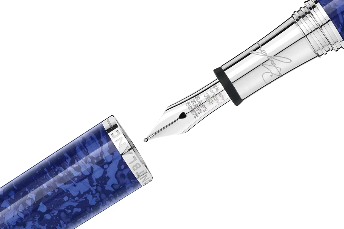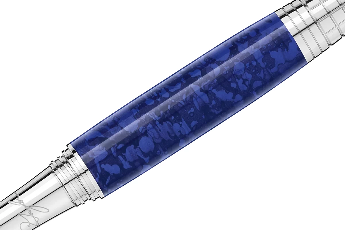 De dop is versierd met het Montblanc embleem in kostbare lak. De uiteinden van de vulpen met de geometrische gravure laten men denken aan een typisch sieradenpatroon uit de jaren vijftig. Elizabeth Taylors passie voor sieraden diende als inspiratie voor de ringvormige clip, die met zijn vorm de aandacht trekt.