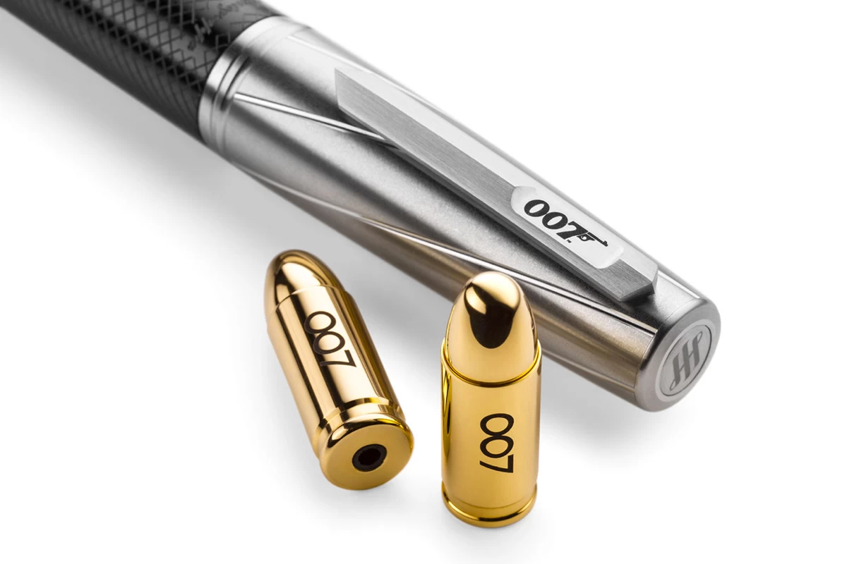 De vulpen is nog ingenieuzer, met een revolutionair Swift-Shot vulsysteem dat speciaal voor deze editie is ontwikkeld. Een paar messing inktcapsules lijken op de 7,65 mm patronen van de Walther PPK, en worden gevuld met behulp van “Power-Push” hydraulische actie en een op maat gemaakte herlaad pipet geleverd in aluminium/staal, samen met bijbehorende accessoires