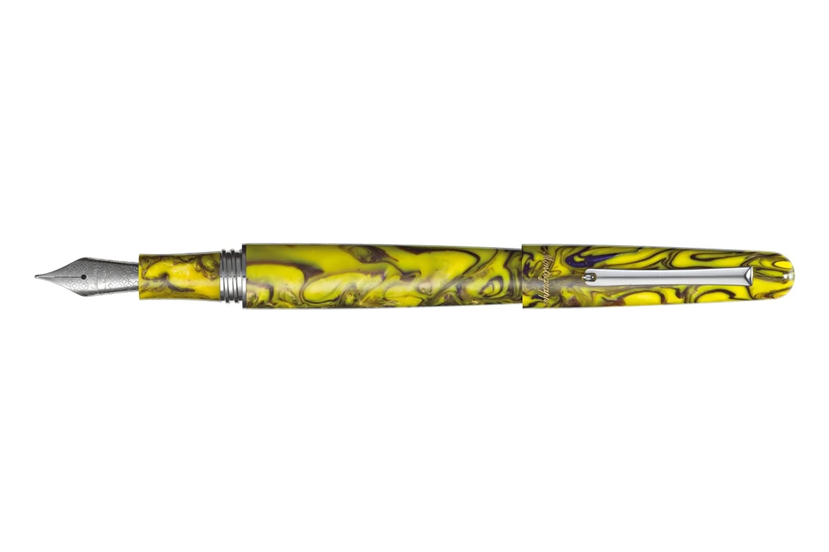 De Fantasy Blooms collectie van Montegrappa is een oude collectie uit 1920 die in een nieuw jasje is gestoken. Met felle kleuren en psychedelische prints is deze vulpen perfect voor de creatievelingen en kleurrijke zielen. De pen is gemaakt van hars met gele en blauwe lak.