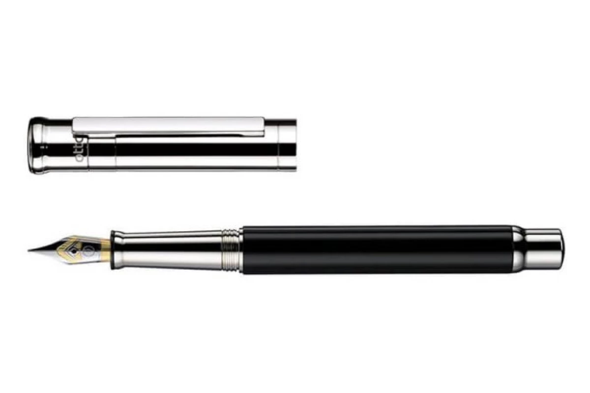 Deze vulpen is effen zwart met een lak finish, waardoor deze er erg modern uitziet en is verkrijgbaar met een Medium, Fine en Extra Fine penpunt.
