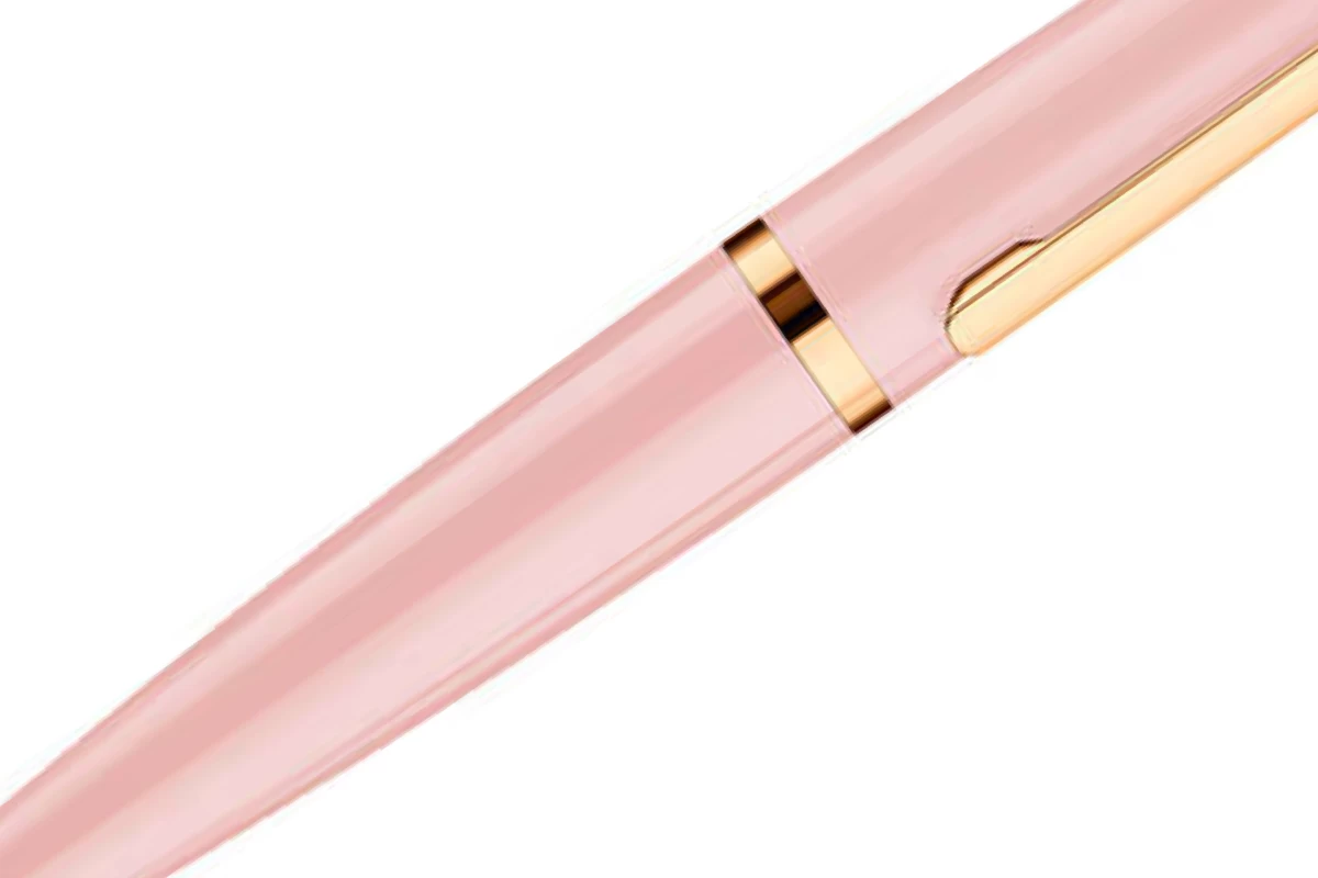 Deze balpen is effen oud roze met een lak finish. De pen heeft afwerkingen van roségoud. Dit zorgt voor een moderne, maar elegante look.