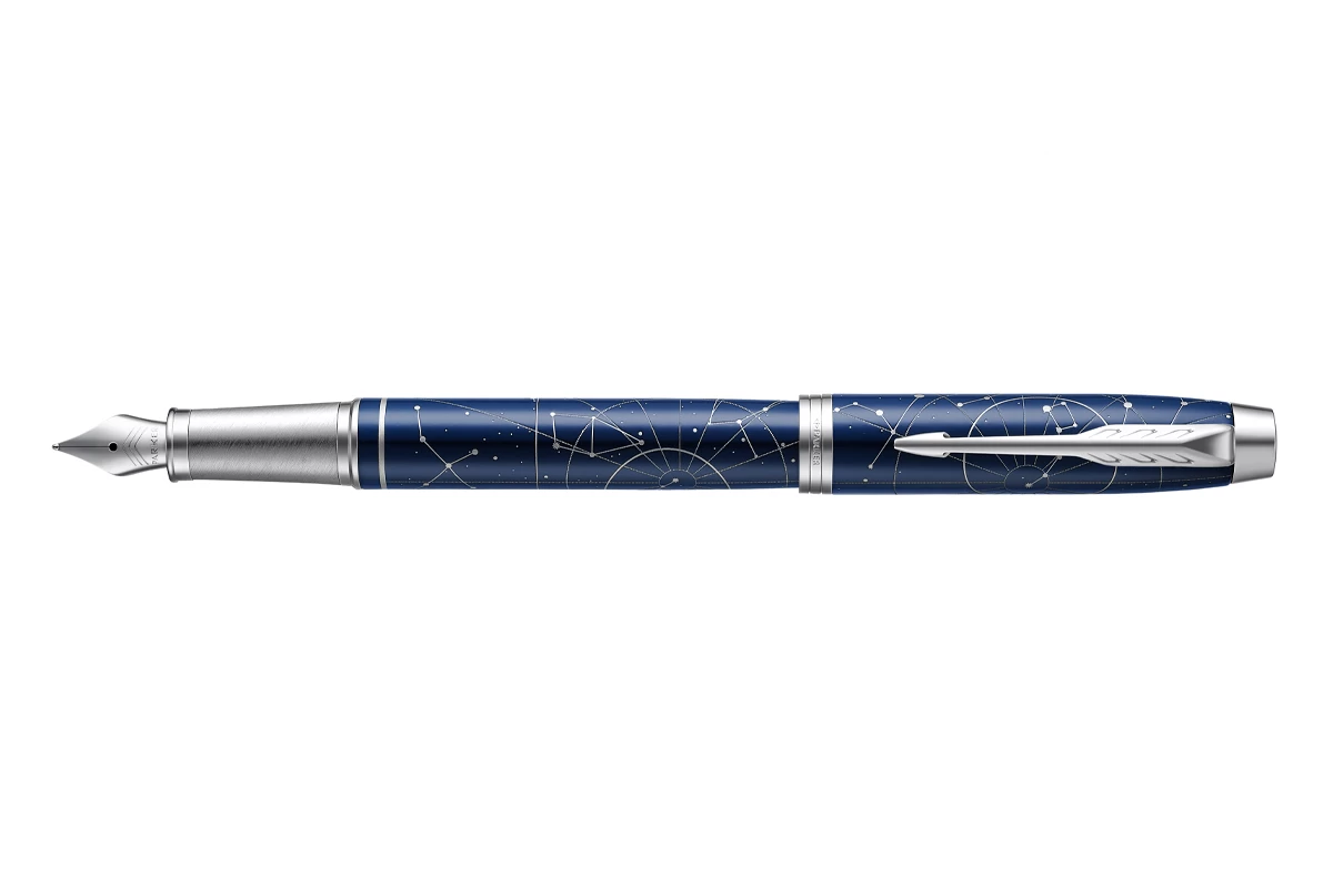 De IM Special Edition Midnight Astral is geïnspireerd door het universum in de palm van ons hand. De dop en barrel, verfraaid met een sterrenbeeldconstellatie, begeleiden ons op onze reis naar het creëren van een positieve impact op de wereld. Het soort impact dat de hele nacht door schijnt en ons doel in het leven viert. Met een roestvrijstalen, blauw gelakte houder en dop met een glanzende vernis en de iconische pijlclip, is deze pen zorgvuldig afgewerkt volgens de hoge standaard emblematische of Parker’s expertise en vakmanschap. Met de Parker IM Special Edition Midnight Astral kunt u uw doel vinden.