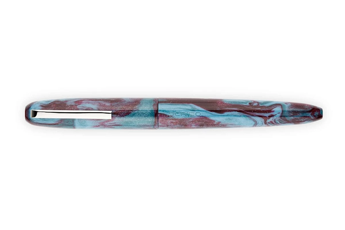 De Piuma Fusione heeft een lichtblauwe en bordeaux rood lichaam. De dop, houder en sectie zijn gemaakt in Diamond Cast, en de clip en metalen onderdelen met platina afwerking. De pen heeft een 14K gouden penpunt en kan gebruikt worden met cartridges of een converter.