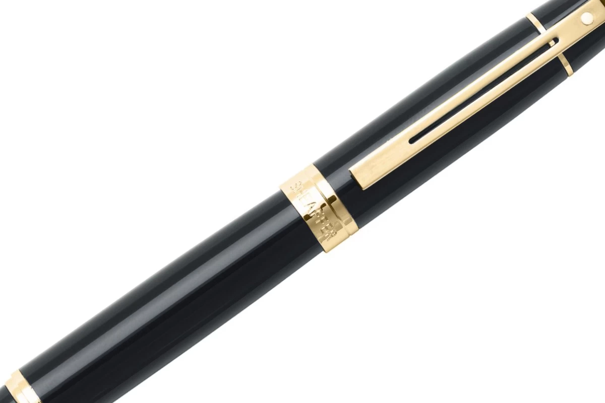 Deze mooie Sheaffer 300 vulpen heeft een glimmend zwart gelakt lichaam en dop, welke beiden zijn afgewerkt met gouden finishes. Het Sheaffer 300 model heeft een modern design. Samen met de mooie finishes heeft dit geresulteerd in de elegantie die deze pen uitstraalt. De vulpen is verkrijgbaar met een fijne of medium penpunt.