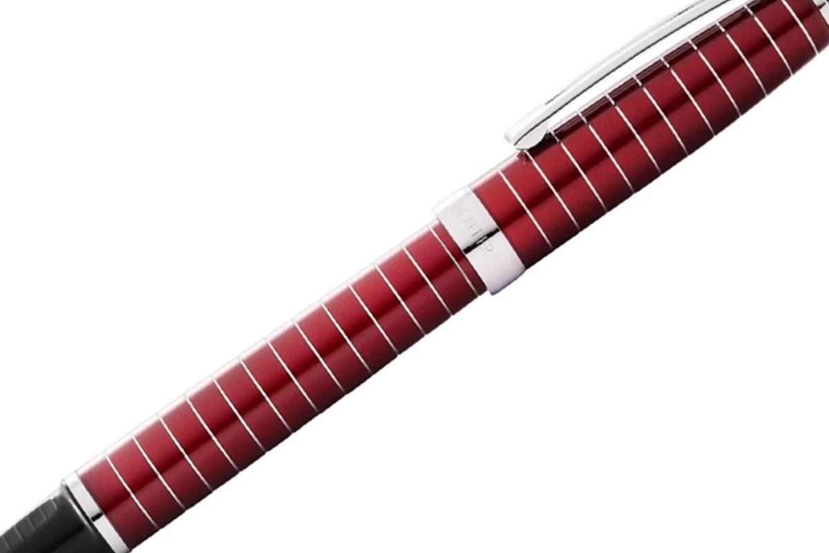 Het traditionele sigaarvormige silhouet is nu verkrijgbaar in Art Deco-geïnspireerde Merlot rood gelakte PVD-afwerkingen met horizontale graveerlijnen, waardoor Prelude een luxe accessoire en een persoonlijk statement van stijl is.