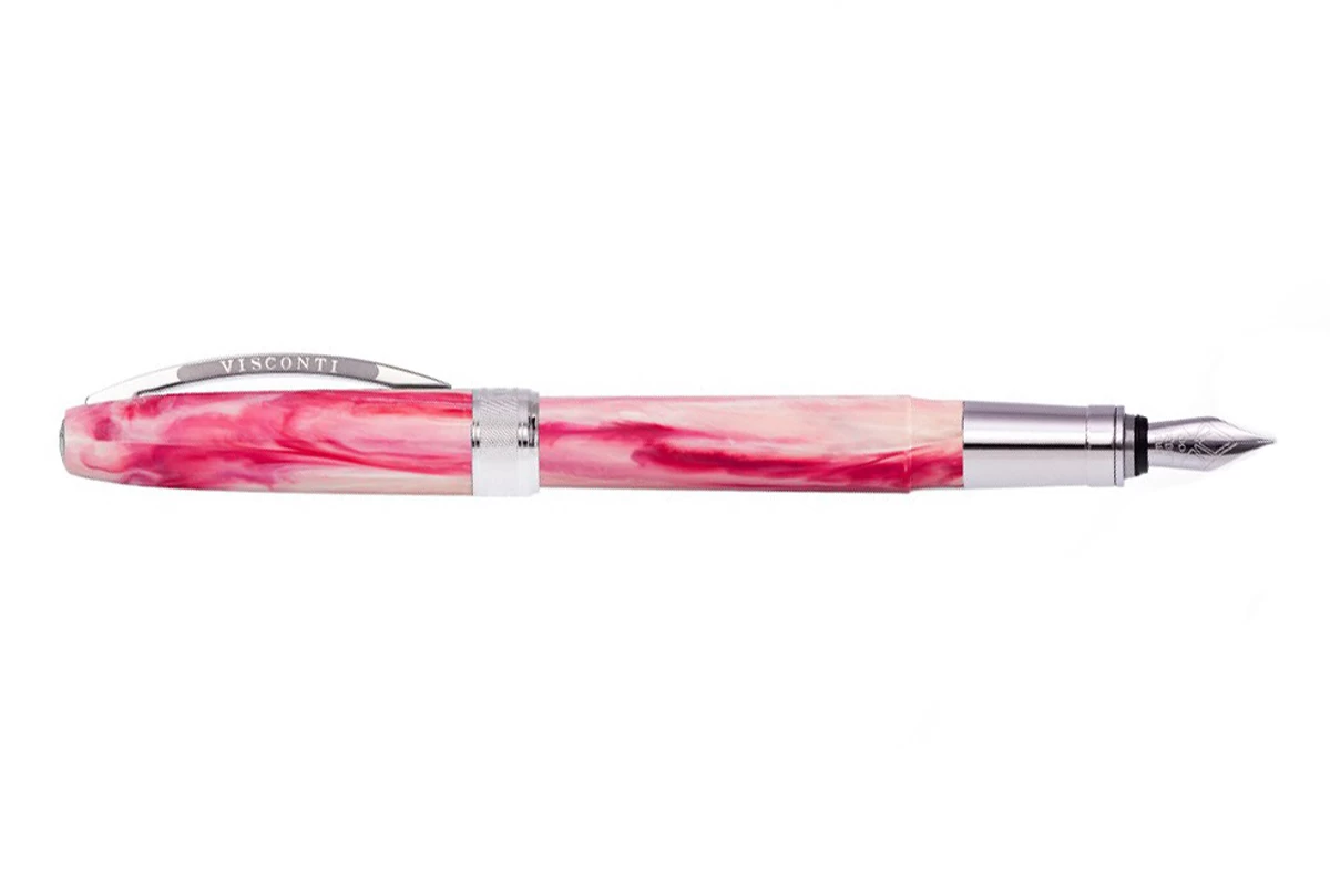 De van Gogh Souvenir de Mauve is gemaakt van unique gemixte hars, geinspireerd op de palletten van olie verf. Het hars is van verschillende kleuren roze gemixt met wat paars en wit. Op de ring die onder de dop zit staat de naam van het schilderij aangegeven. De pen bevat ook de bekende Visconti clip.