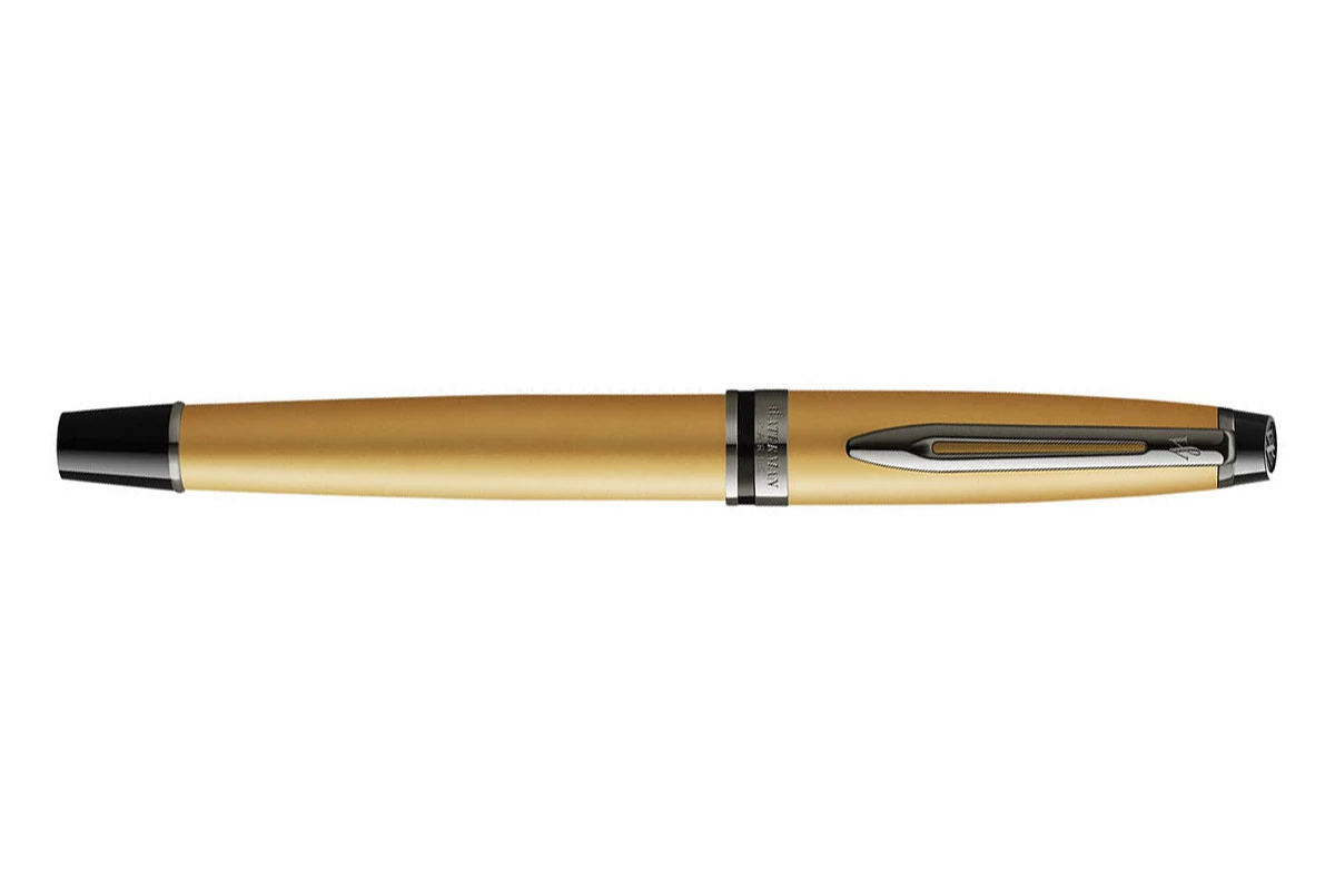Deze vulpen heeft een mat gouden body en dop en ruthenium-gecoate accenten. Daarnaast beschikt deze ook nog over een zwarte penpunt wat de vulpen een complete en stijlvolle uitstraling geeft. Ook verkrijgbaar als balpen of rollerball.