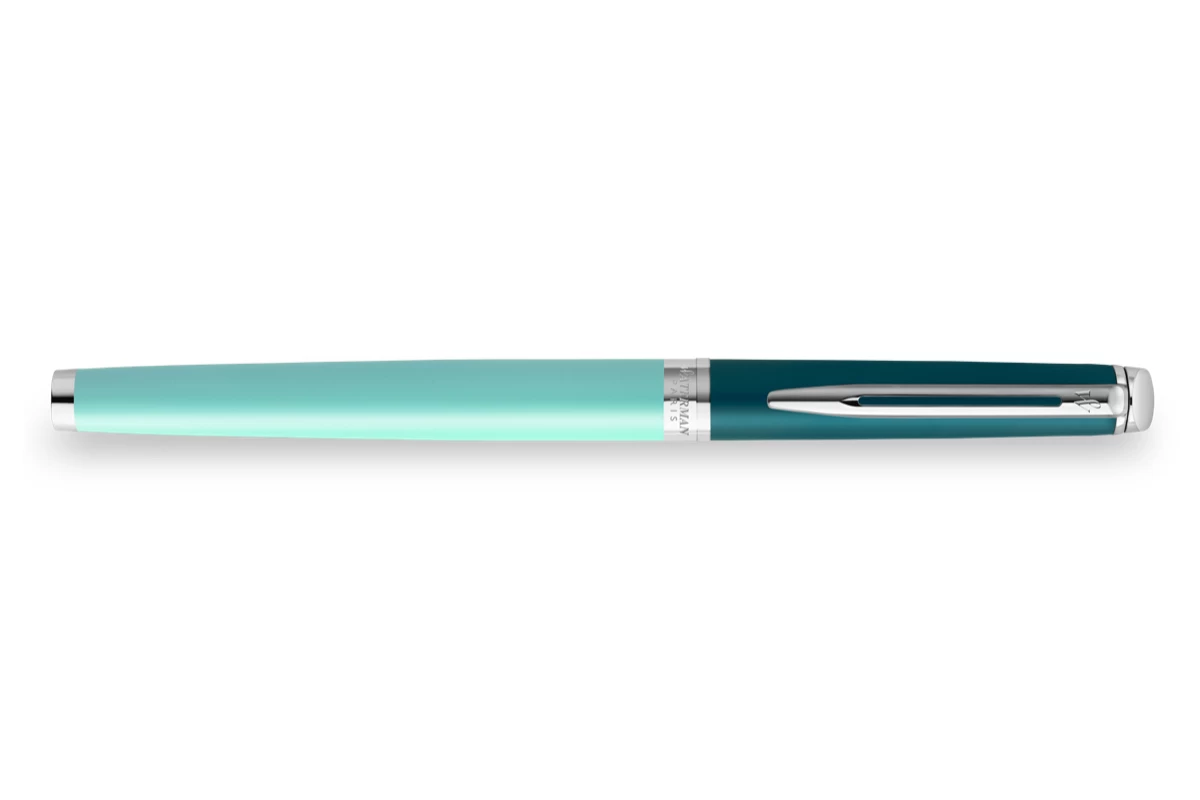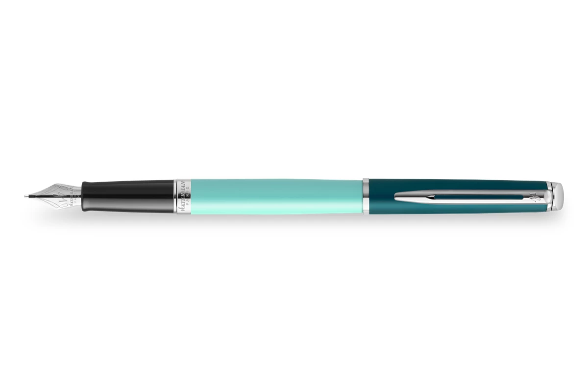 Deze modieuze vulpen, die geïnspireerd is op de meest gedurfde trend van dit seizoen, is stijlvol afgewerkt met twee complementaire tinten blauw.
