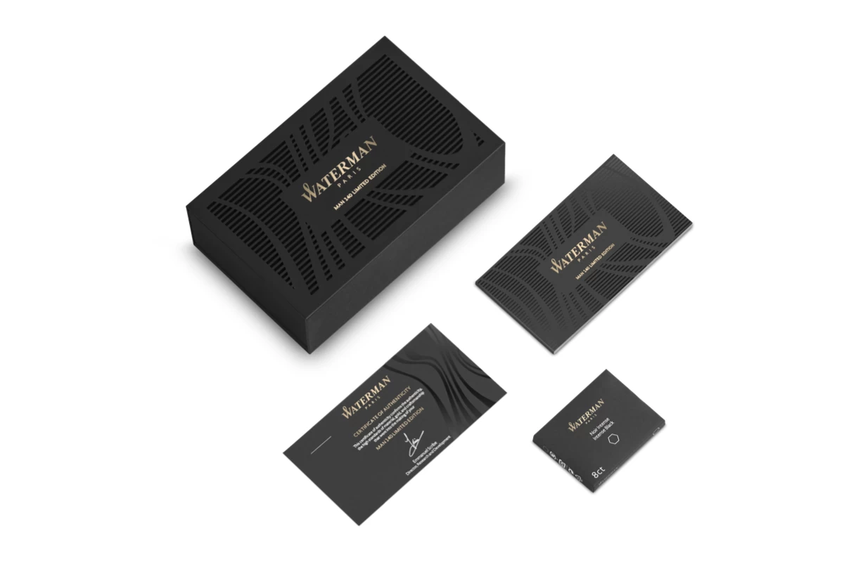 De pen wordt geleverd in een speciale Man 140 Limited Edition geschenkverpakking samen met een pak inktpatronen, een certificaat van echtheid en een gebruikershandleiding.